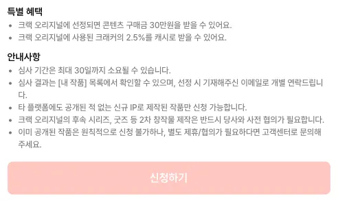 크랙 오리지널은 아쉽지만, 모든 제작자분이 신청할 수 없어요!