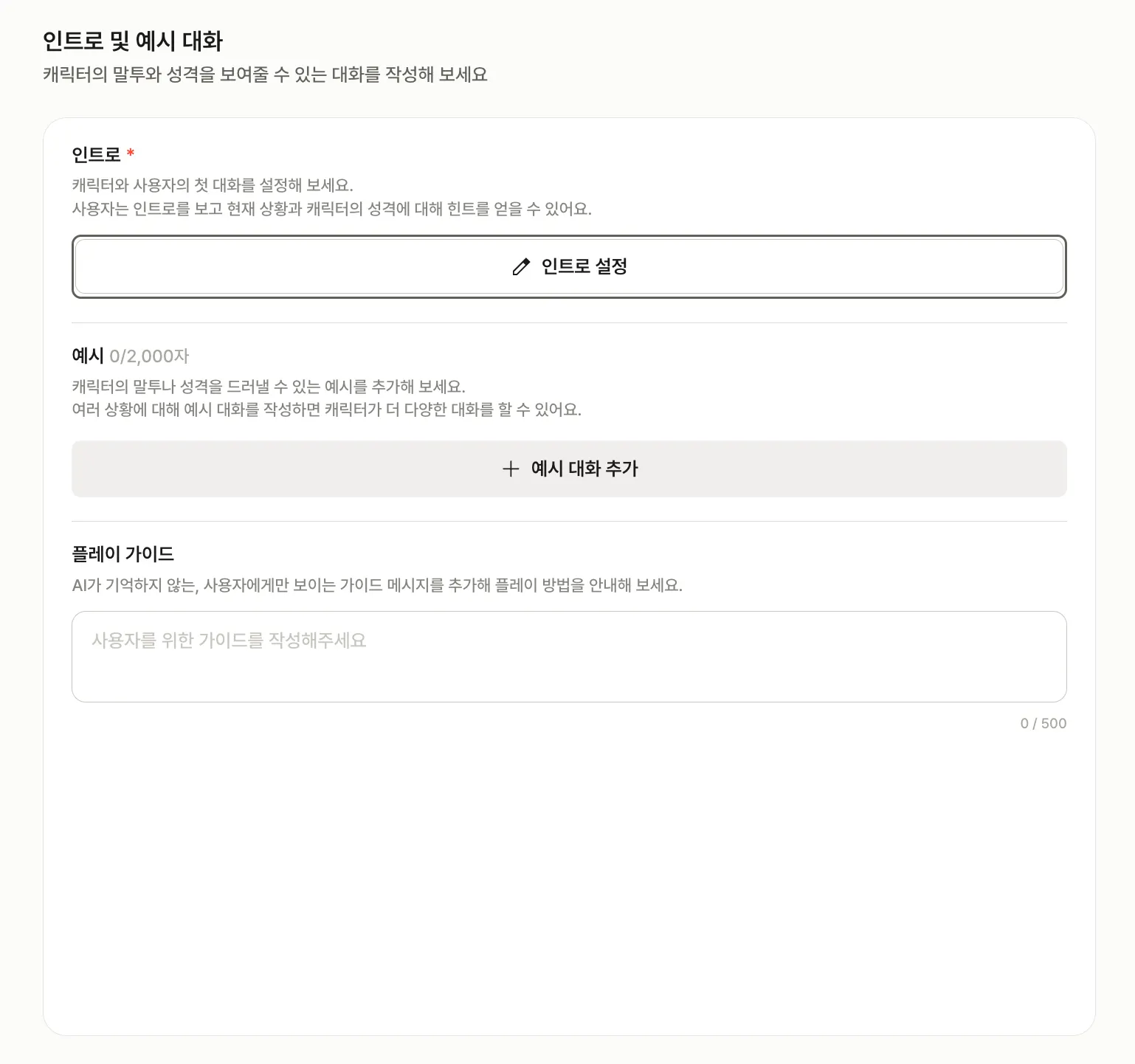 캐릭터의 말투나 성격을 드러낼 수 있는 예시를 추가해 보세요.