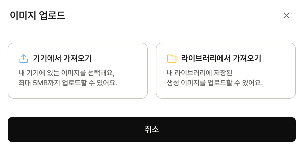 적당한 이미지가 없다면, 이미지 생성 기능을 활용해 직접 만들어 라이브러리에 저장해두고 사용해보세요!