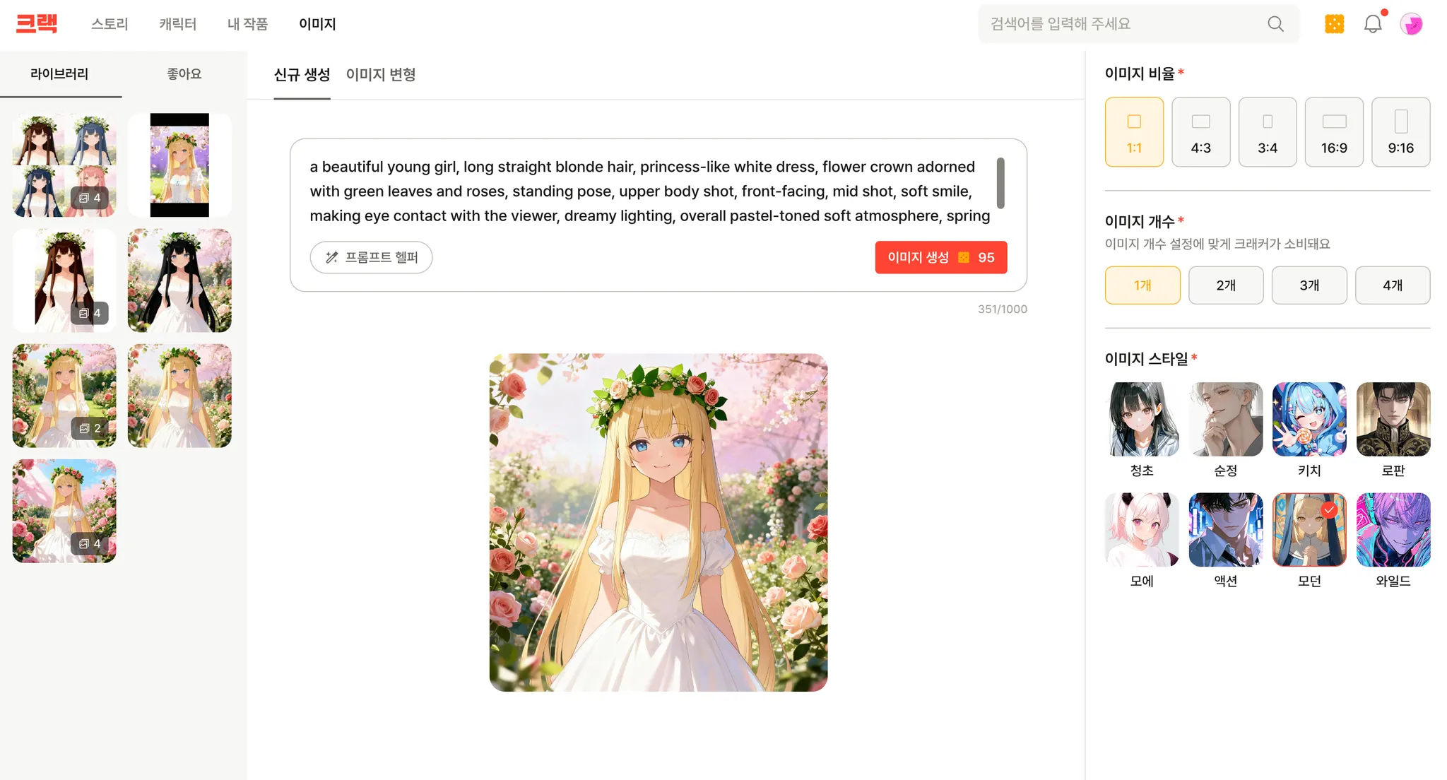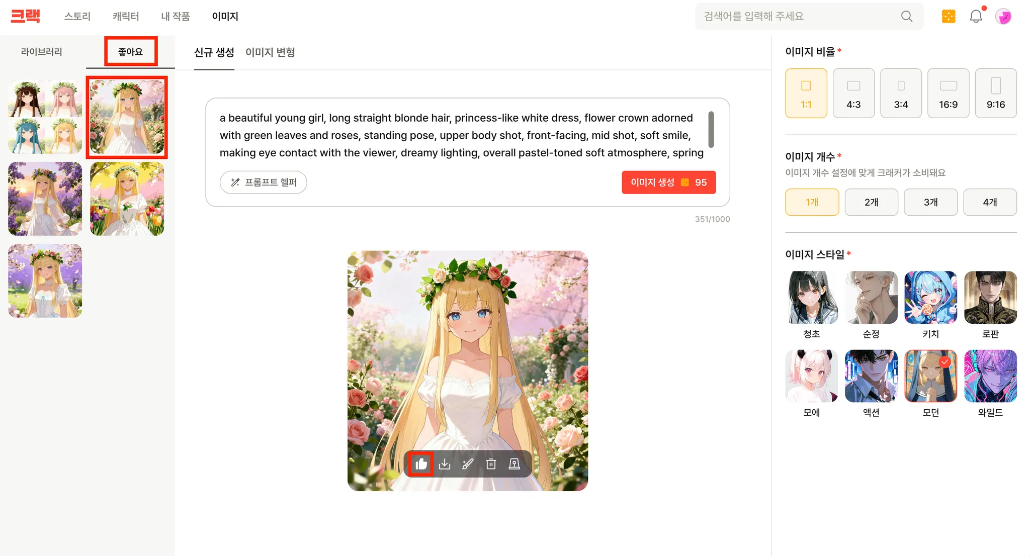 생성된 모든 이미지는 화면 왼쪽에 위치한 라이브러리에 자동으로, 안전하게 담기니까요.