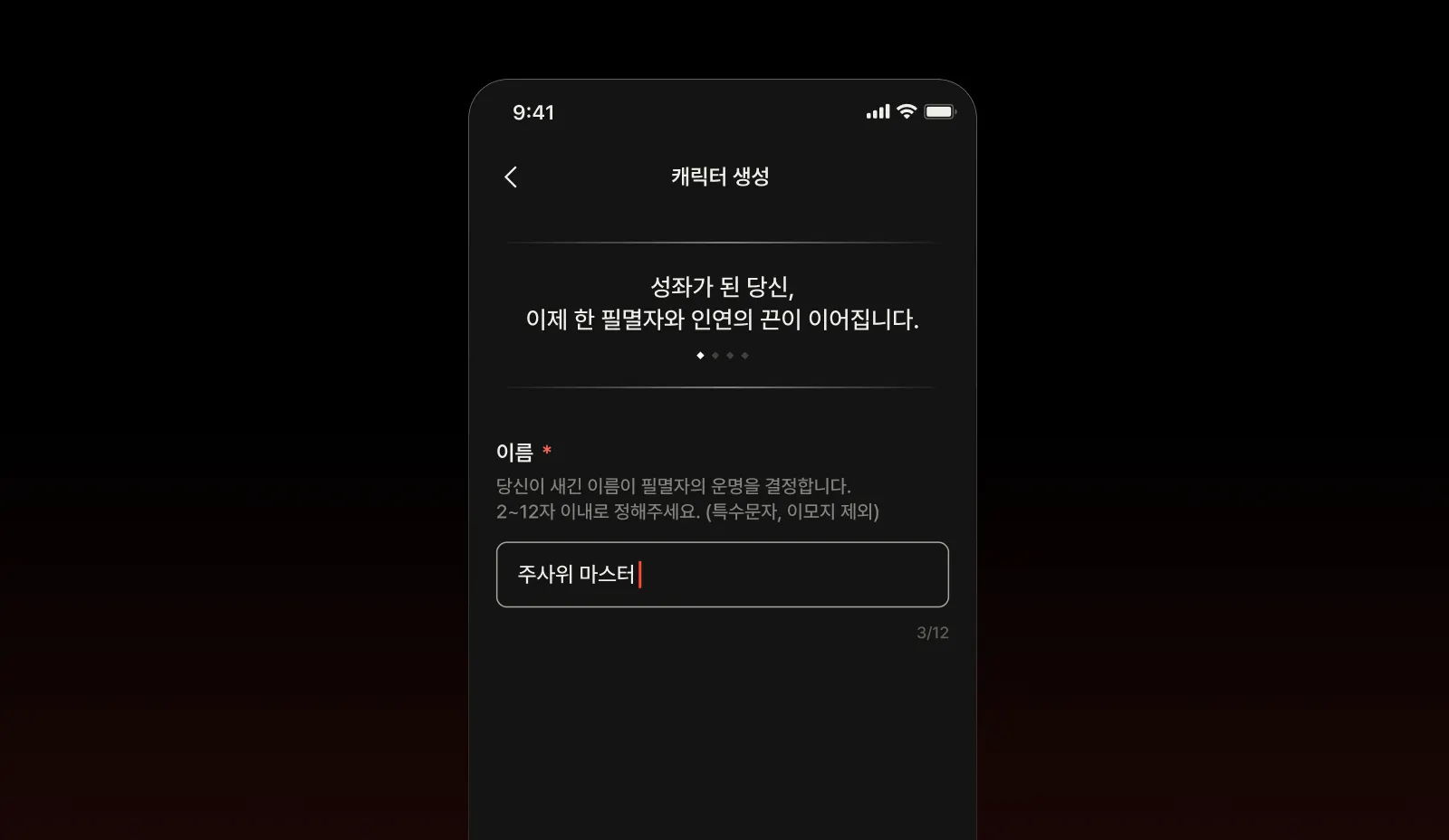 성좌가 된 당신과 인연의 끈이 이어질 필멸자의 이름을 정해주세요.
