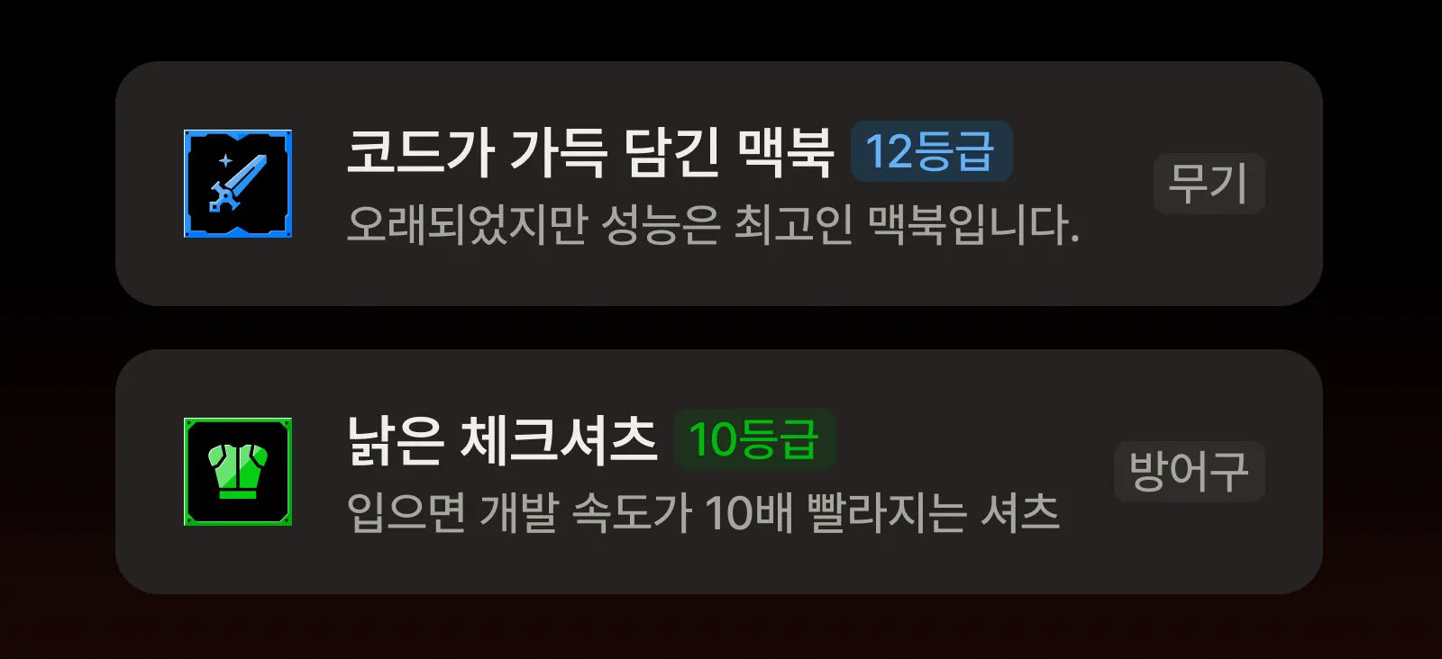 예를 들어 캐릭터 설정에 개발자를 직업으로 넣으면 ‘맥북’을 무기로 사용하고 ‘CSS 재정렬’이라는 독특한 스킬을 얻기도 하죠.