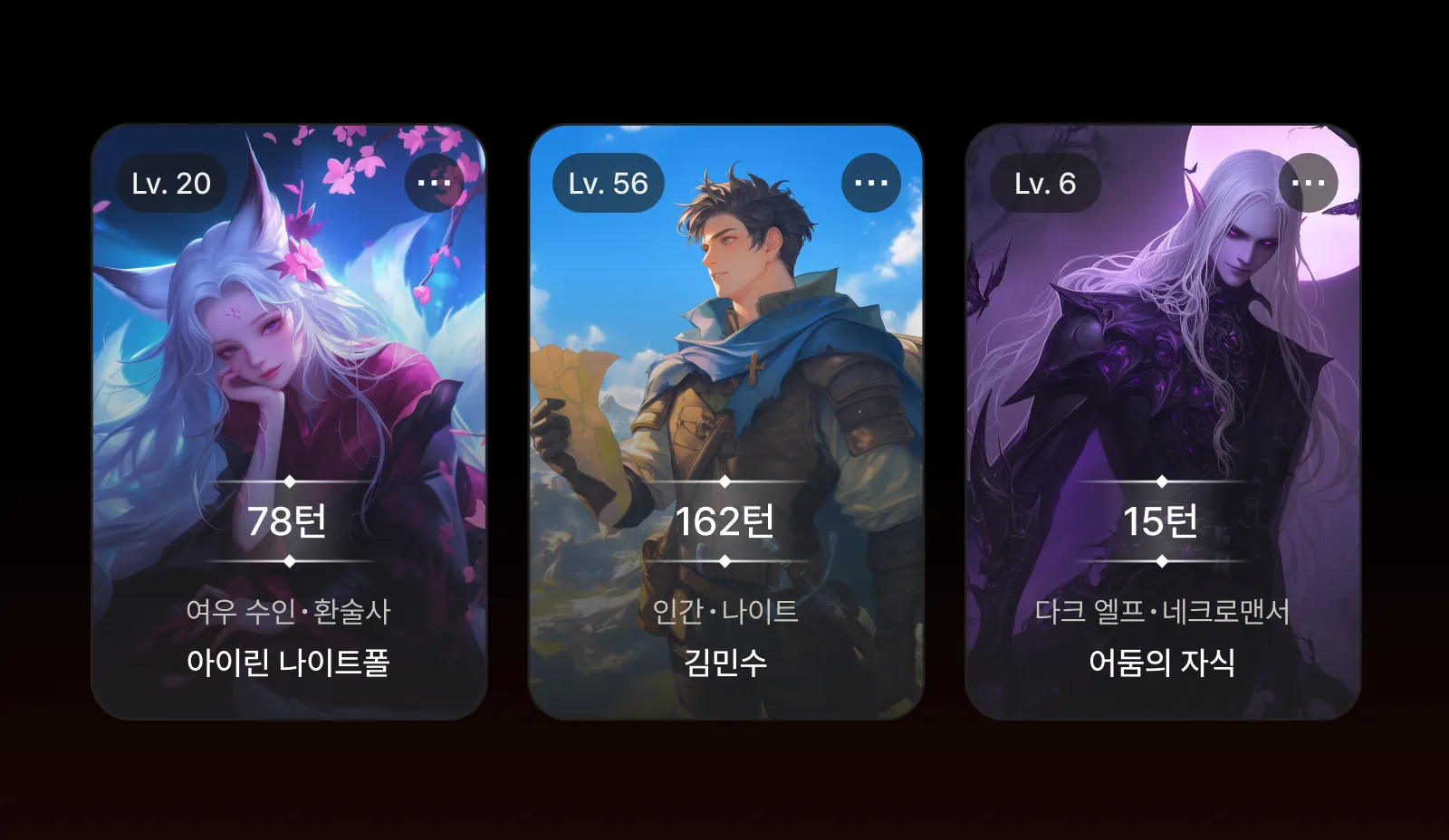 여러 설정의 캐릭터를 만들어 각기 다른 스토리를 경험해보세요. 반대로 동일한 설정으로 만든 캐릭터라도 당신의 개입과 선택에 따라 영웅이 될 수도, 비극적인 최후를 맞을 수도 있습니다.
