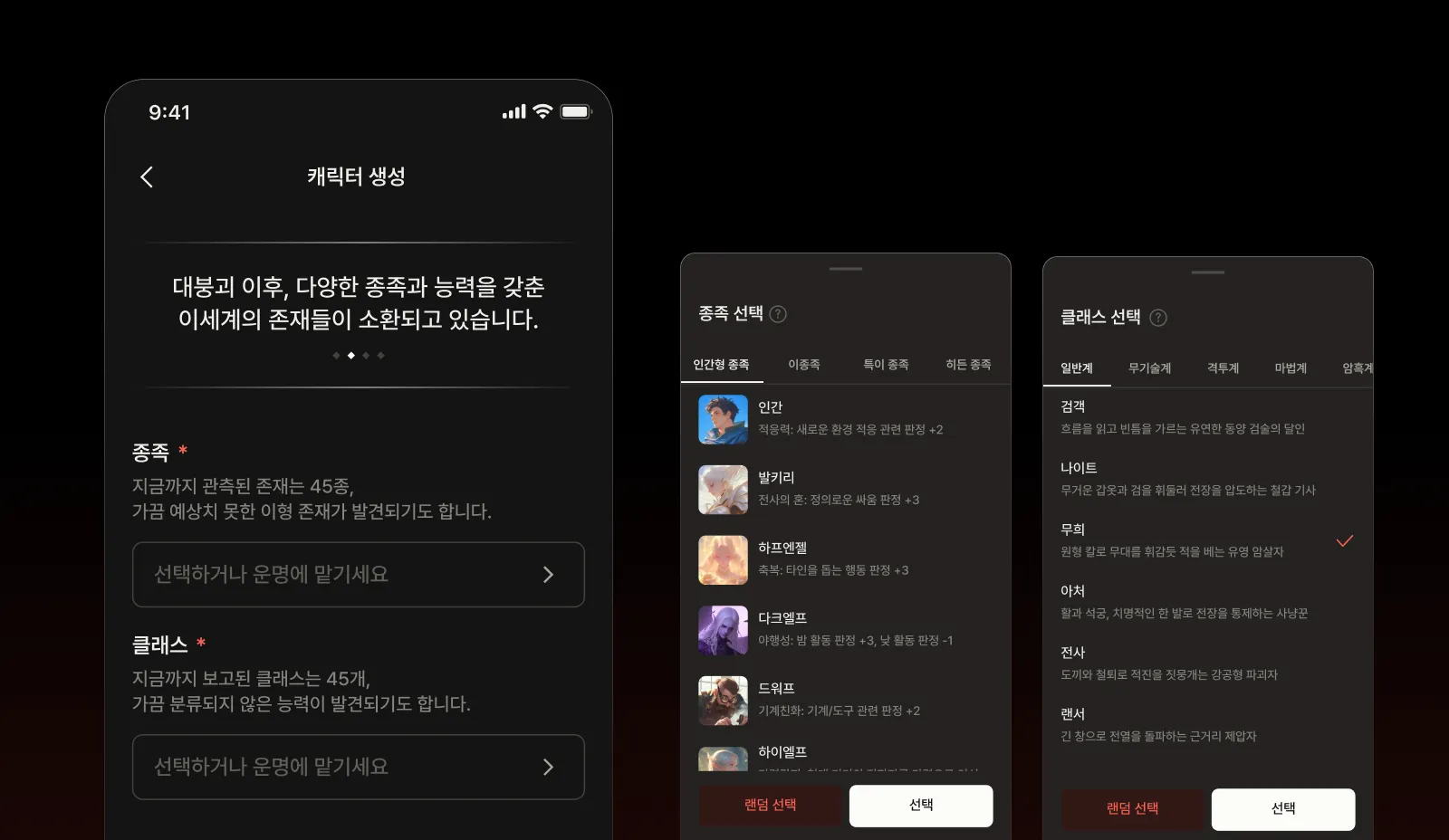 존재의 본질인 종족과 클래스를 선택해주세요.