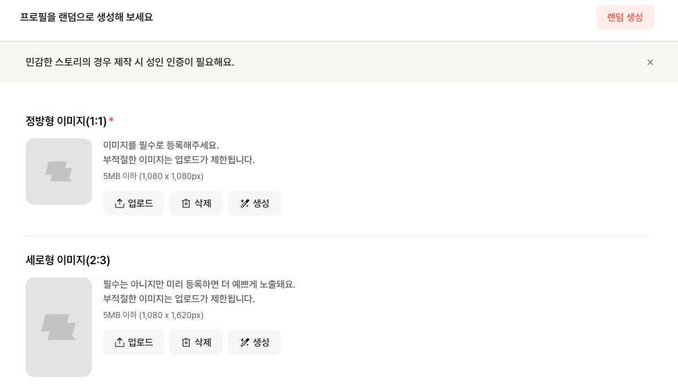 스토리의 얼굴이 되는 ‘프로필 이미지’부터 등록해주시고