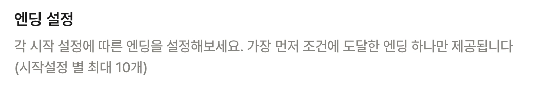 각 시작 설정에 따른 엔딩을 설정해보세요. 가장 먼저 조건에 도달한 엔딩 하나만 제공됩니다