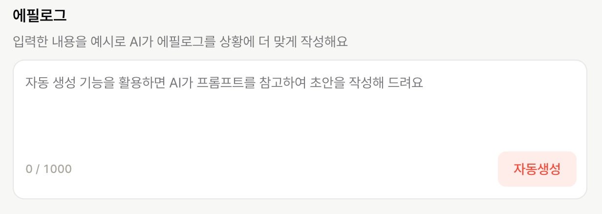 엔딩의 내용을 입력해 주세요. 자동 생성 기능을 사용하면, AI가 입력한 프롬프트를 바탕으로 엔딩을 한층 더 완성도 있게 다듬어 드립니다! 엔딩 카드를 뒤집으면 이때 작성한 에필로그가 펼쳐집니다!