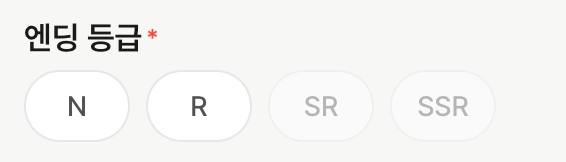 각 엔딩에 4가지 희귀도 등급이 부여할 수 있어요. (N / R / SR / SSR)