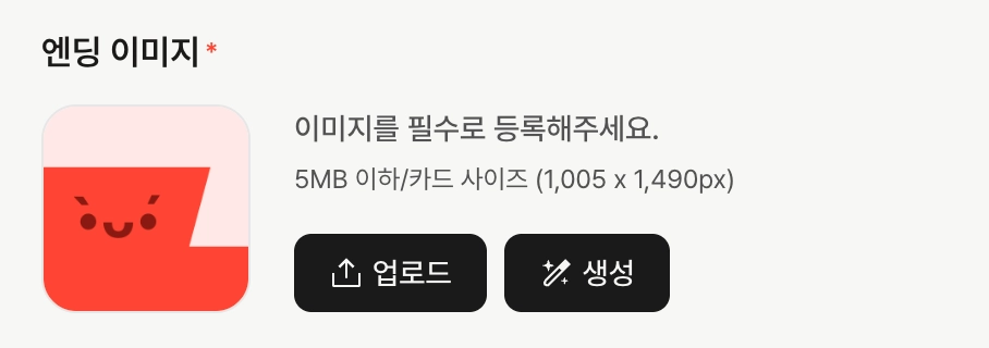 5MB 이하/카드 사이즈 (1,005 x 1,490px) 로 등록할 수 있어요